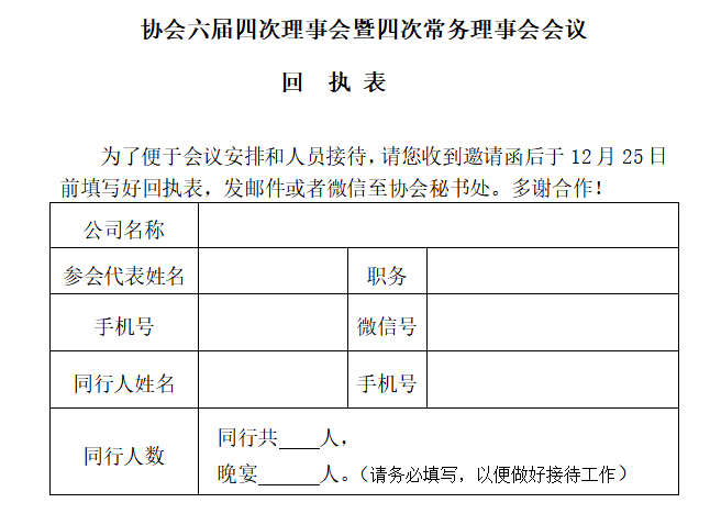 经研究决定,我协会定于2025年12月26日(周五)下午,在广州召开第六届四次理事会暨四次常务理事会会议。现将有关事项通知如下: