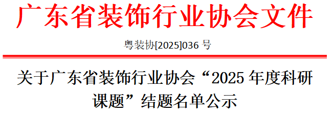 公示期为2025年12月24日至12月30日。公示期内,任何单位和个人如对拟结题课题有异议,请以书面、署名形式向广东省装饰行业协会秘书处提出,并提供必要的证据材料。
