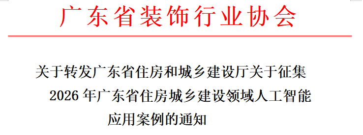 为贯彻落实《国务院关于“人工智能+”行动的意见》(国发〔2025〕11号)精神,按照《广东省关于人工智能赋能千行百业的若干措施》《广东省推动人工智能与机器人产业创新发展若干政策措施》《关于切实压实“管行业管人工智能应用”责任推进人工智能全域全时全行业应用的通知》等文件要求,推动“人工智能+住建”产业深度融合,省住房与城乡建设厅决定在全省范围内组织开展2026年广东省住房城乡建设领域人工智能应用案例征集工作。现将有关事项通如下: