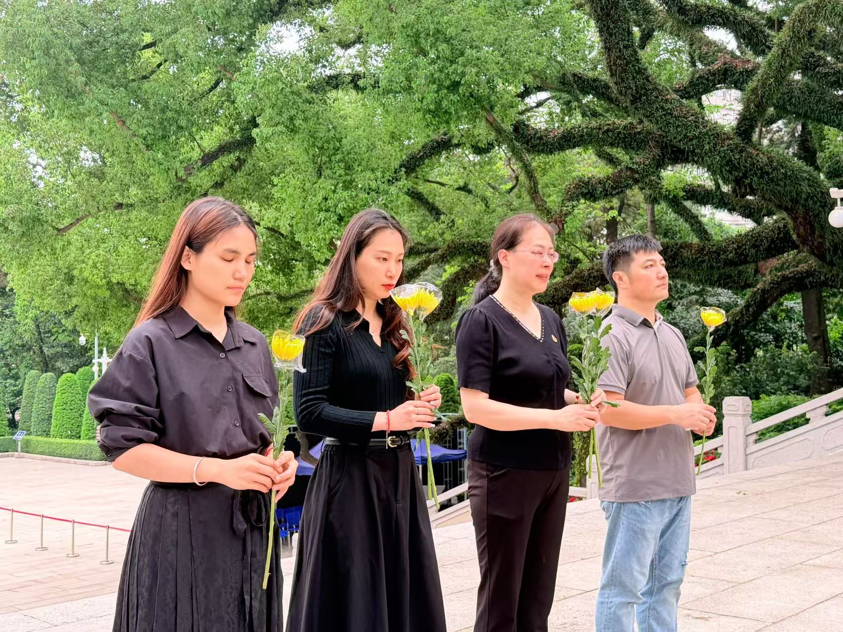 活动现场庄严肃穆,松柏苍翠、哀思绵长。参加活动的全体人员手持淡雅黄菊,在广州起义纪念碑前整齐列队,神情凝重、心怀崇敬,深切追思革命先烈为民族独立、人民解放挺身而出的英勇壮举。全体人员向为革命事业英勇献身的烈士们鞠躬默哀,在静默中感悟英烈初心、铭记历史使命,深切感念当下和平幸福生活的来之不易。
