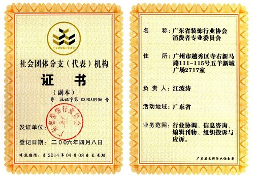广东省装饰协会证书