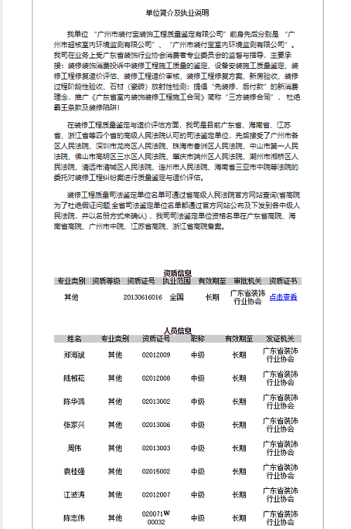 装修工程质量司法鉴定单位名单可通过省高级人民法院官方网站查询(省高院为了杜绝假证问题,全省司法鉴定单位名单都通过官方网站公布及下发到各中级人民法院,并以名册方式来确认) ,我司司法鉴定单位资格在广东省高院、海南省高院、江苏省高院、浙江省高院、广州市中院都有备案。