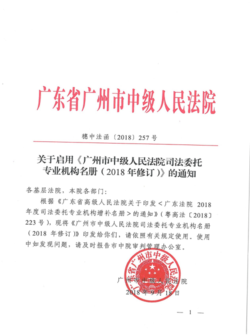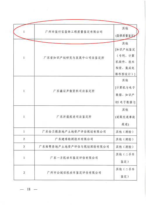 司法委托>机构名册>下载“广州市中级人民法院司法委托专业机构名册(2018)”>搜索“装付宝”
